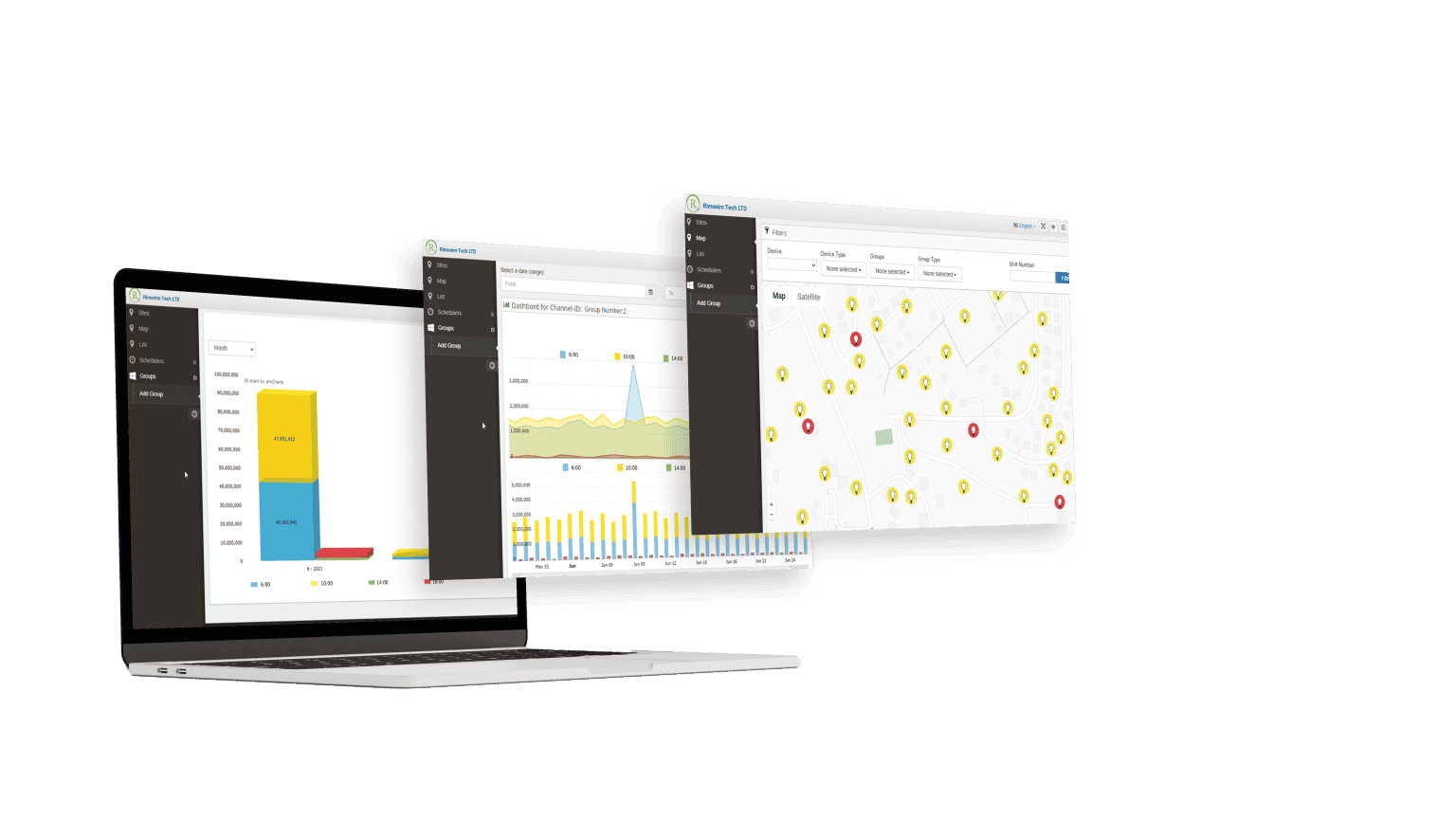 Rimonim’s Mangement Site Cloud control and monitoring system with a central management site for multi-purpose smart street lighting.